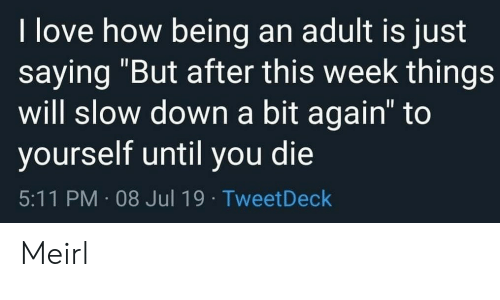 “I love how being an adult is just saying ‘but after this week things will slow down a bit again’ to yourself until you die”